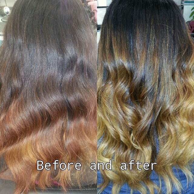 I just a new client that found my work on pinterest and Instagram. Her friends did her ombre. I say they did a pretty good job..she came in because she wanted it blonder and so I did. She was so exciting, full of life and funny at that.