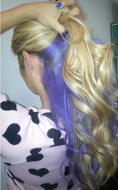 Back to hair:)) I bleached out the bottom of her hair with 40 volume peroxide and goldwell bleach I kepted checking her hair every 5 minutes to make sure her hair wasn’t mushy. Mushy hair is not a good thing..it’s a sign that it’s about to break off. She has strong hair. I was able to leave the bleach on for 45 min..phew👌….I got it light enough to be able to use the manic panic colors on her. I mixed purple haze with electric amethyst. I let it sit on her hair for about 20 min…..Ta da!!! Her hair was a hit last night.