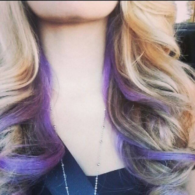 Happiness is waking up to selfies from my clients. I did this purple job last week Friday. It took two sessions to do because the hair needed to be really blond before I colored it purple.