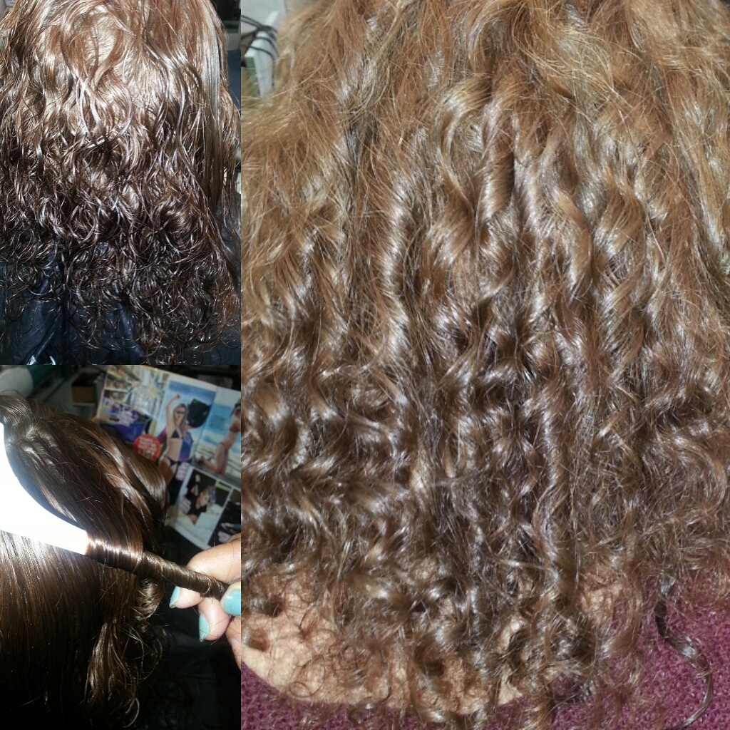 If you are bored and don’t know what to do with your curly hair apply anti frizz products on in when wet. Take a rat tail comb and wrap small sections of hair around the tail of the comb. Sit under a hair dryer. My client was impatient and kept touching and messing with her hair. The curls would of came out much more nicer had she been patient. What to do. I can’t smack her hand😅 non the less she was happy with the results. I would of been much more happier had she not touched her hair, oh well. We all went home happy this Friday night.