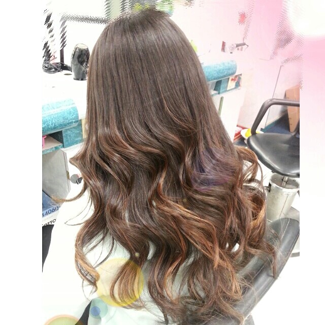I did this yesterday. Shawne has thick long hair. It has the tendacy to get poofy if its cut shorter. She wanted it shorter but I told her to wait a couple of weeks and try out this length and them come back if she wasn’t satisfied and I will cut more off. She wanted a somewhat golden red ombre based on a picture she showed me but I decided to use 7ash with 30 volume and used bleach on every other wax paper… The reason why I did not use a gold or red color is because if you already have black hair and you use those tones it will have a tendancy to fade into a brassy color. With the ash color even if it fades it won’t be so brassy. Her hair will lighten up in about a month… For now I wanted to do a subtle change nothing too dramatic because she is still in highschool.