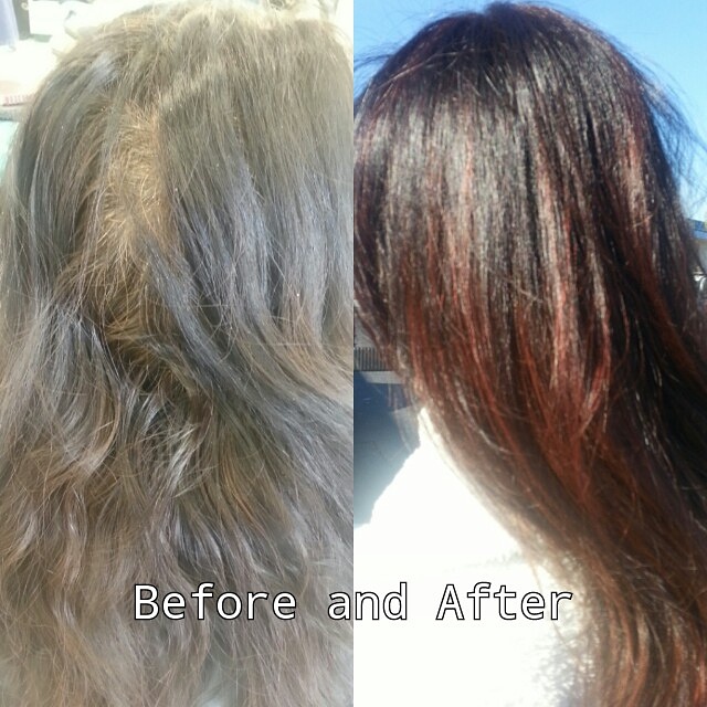I got a new very nice client from Pinterest. She was so nice it felt strange. She did not have a weird personality, she was relaxed and let me do my thing. She was coloring her hair at home with a box color and it made her hair black but very uneven.. The back of her hair was a light brown you really cant tell because of course the horrible lighting did not allow me to capture the real look.ย I did her base color with a 5n by Framesi while she was processing I did a balayge highlights. My goal is to make her into a soft brown blond. Its going to take me at least 4 sessions to get it there. Her hair came out a soft light brown but in the sun it looks red. Please don’t ask me how to take hair pictures. I don’t know anything about photography. I never get what I want on my cell. Its always a sad situation. She made her next hair appointment for next month. This time she is coming later in the afternoon maybe the hair pictures will come out better!! And oh I gave her a deep conditioner by Joico.