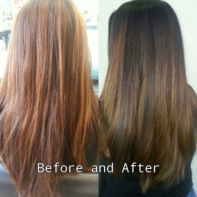 Gabby came I’m today she found some pictures on instagram that she wanted to try m actually her hair does did not look like that on the left. Her hair had faded to a real ashy color. She told me that her wage smells like chlorine. That explains it. My cell phone make everyone’s hair look brassy. I can’t stand it. I used two colors 5n and 6n framesi color line mixed together…combed it through then did balayage while she was processesing I topped it off with a 8na color and used it as a toner on the ends with 5 volume peroxide for 15 min trimmed and then blowdryed it.