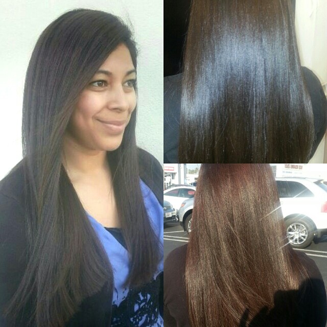 Yesterday I did Quetah’s color retouch. I used 6n by framesi. Prior too that I a couple of months ago I had done the keratin treatment. When she first shampood her hair at home it looked frizzy. I don’t think the Kerstin was mad to wash and go. You still have to blow dry it and style it. Her hair looks really shinny and it swings really pretty. I also gave her a trim. I’ve only done two keratin treatments so far. It seems like one of those things you can just offer anyone. The hair has to be in good condition.
