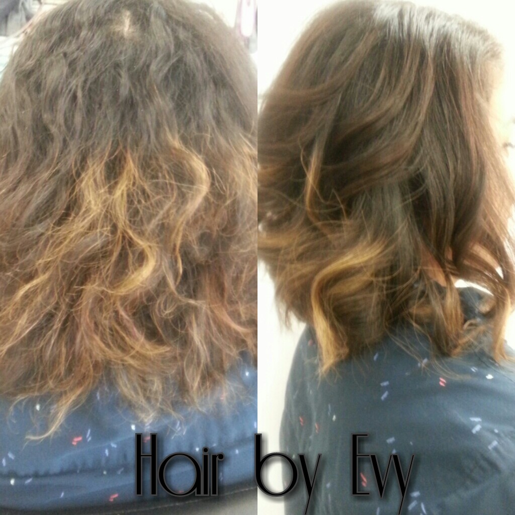 I did this a few months ago don’t remember if I posted it or not. She came in with dry crispy hair and no shape. I blended her color and gave her a Bob haircut to make her look a little edgier. I don’t like my clients walking around with the soccer mom look. She’s too young to start looking frumpy.
