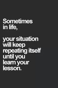 This is so true. Situations will keep repeating themselves through different people until you learn the lesson. As much as you want to run and hide confront it and get it over with. Is it a lesson about humility, pride, ego, forgiveness, racism? Only you know what you what you need to work on. Stop going in circles and take the right path even if its scary and the unknown. You never know what is waiting for you in your journey. You might meet the most amazing people ever, you might find a mate, travel, learn health tips, go back to school, invent something!