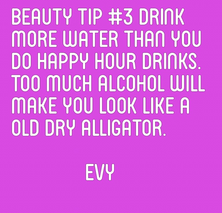 There is nothing wrong with drinking in moderation. Just make sure you drink water like a camel before or after you drink. Back in the day I didn’t want to drink water before I drank because my whole purpose was to get the best buzz. Trust me too much alcohol ruins your looks. People tell me I look good for my age. I really believe it was because I took vitamin E for years. When I was like 17 someone gave me a vitamin book and in one of the chapters it talked about anti-anging and how to slow the process. I remember it mentioned Vitamin E. If I looked like what I’ve been through I’d look scary! LOL!…Drink your water, sleep a lot and don’t stress over things that don’t concern you, that’s my beauty tip for today…gotta go now ..(waves)👋👋