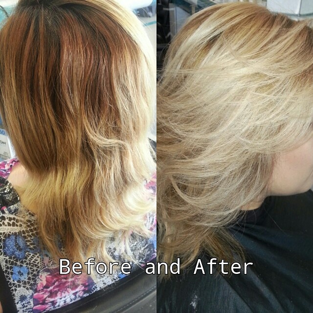 Before and after, I did this yesterday. I recommended a violet based shampoo to keep it from getting brassy. Matrix has a good one. Take biotin vitamins and use Good products on your hair.