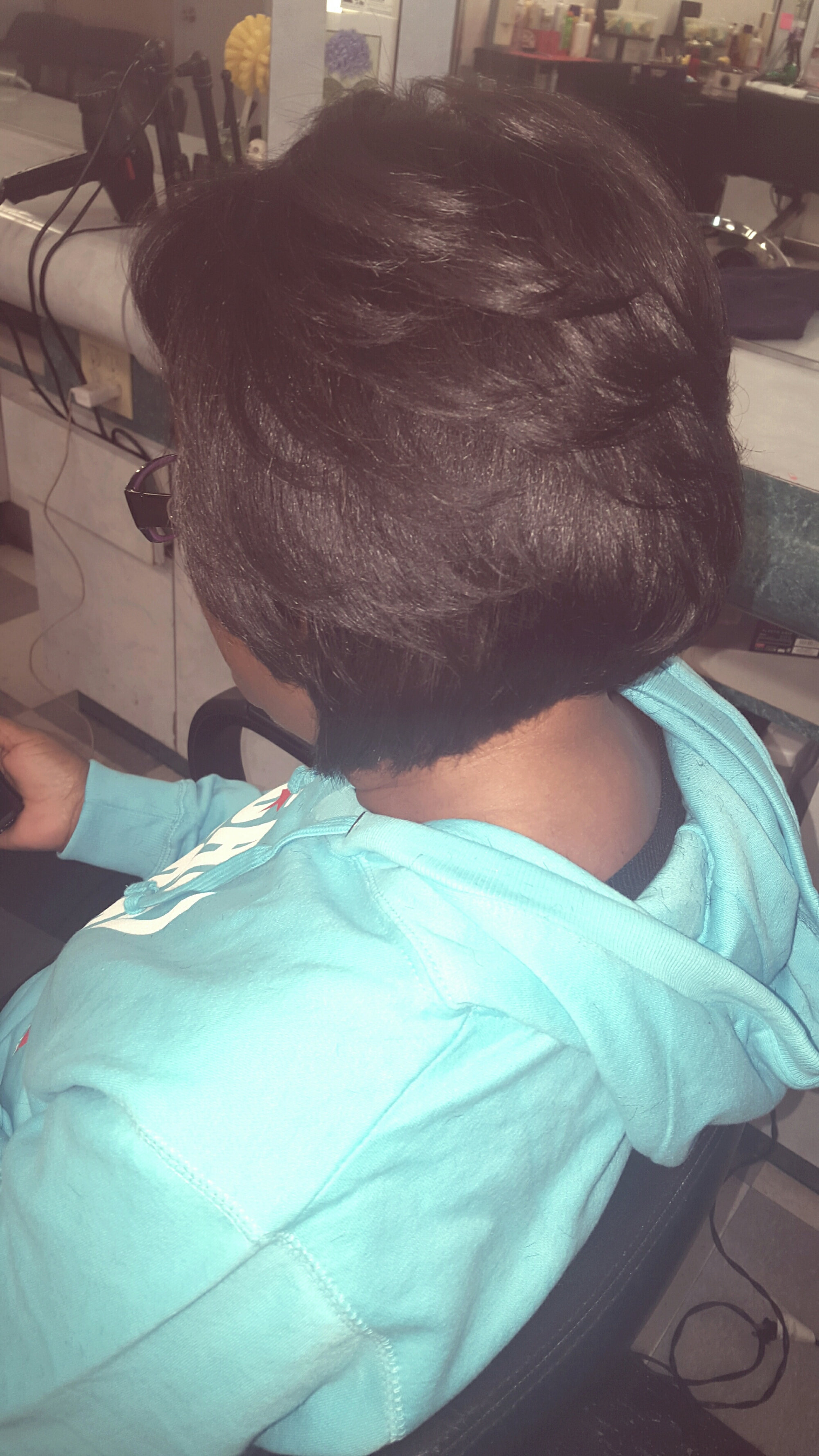 New client caught the bus in the cold to come get her hair done with me. I wanted to give her a layered Bob when I first met her but didn’t want to suggest it since hair is such a touchy subject, didn’t want her to get offended and make her think something was wrong with her hair. She came for the for the fitst time last night and we read each other’s minds. A layered Bob is what she was hoping to get. Great minds think alike😄