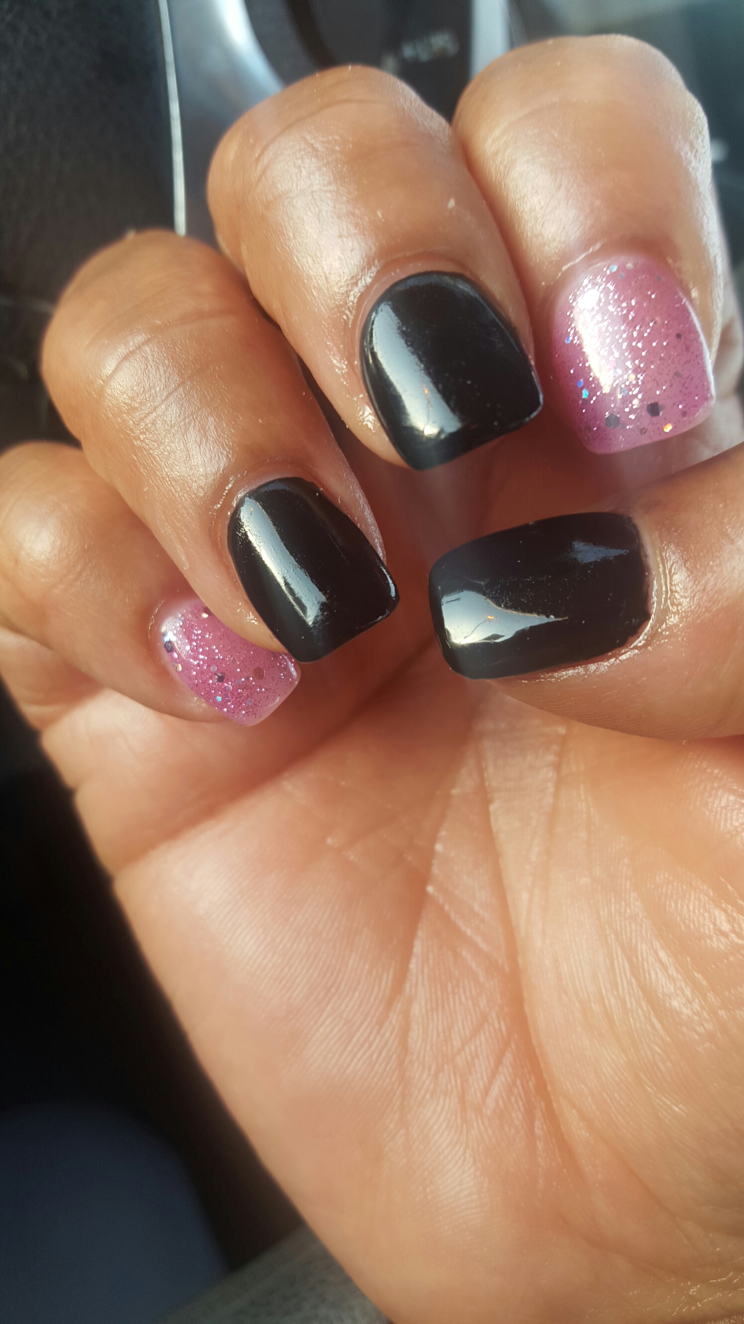 My signature black nails. It works for me because it doesn’t matter if I wear gloves my nails always get stained with hair color This way you can’t tell. I try to be creative and have Jimmy do designs or I ask him to use glitter polish on some of the nails to give it a lil spark. I get about 3 fills out of set then I take them off and get a new set about every two months or so. Did I tell you how I went to the bank on Friday and the bank clerk asked me if I was a hairstylist. I asked her why she said “The way you looked at my hair. Wow! She’s good. “How did I look at your hair she said “Stylists look at hair in a way that cannot be explained. I then went on to commend her stylist for doing a awsome job on her hair color. She told me she pays her $100 bucks for a root touch up. There is something wrong with my prices..LOL!…