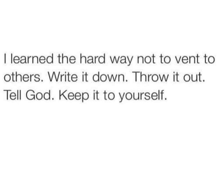 Unless it’s WordPress ๐ seriously be careful don’t do it. Think very hard who you are going to vent to its better not to say too much, talking to the wrong person can backfire. 1) They can bring up the conversation in front of others at the wrong place in front of others 2) You will forget what you vented about and they wont. They will resent the person you vented about after you’ve already made the peace with the one you vented about. 3) You don’t want to come off as a Debbie Downer 4) Don’t vent about a guy you like. It will draw attention to him and next thing you know