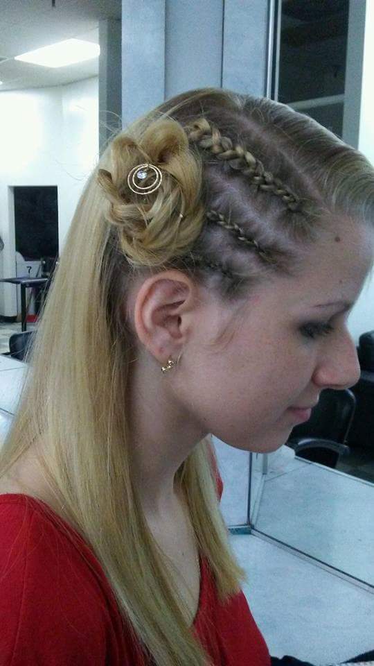 One day I decided to braid her hair. I was inspired by pinterest. I wanted her hair to look like she had a flower on the side. After I was done I asked her if she had any earings..I pinned a earing in the middle of the flower and Ta Da!!! This is the end result. How does it look?