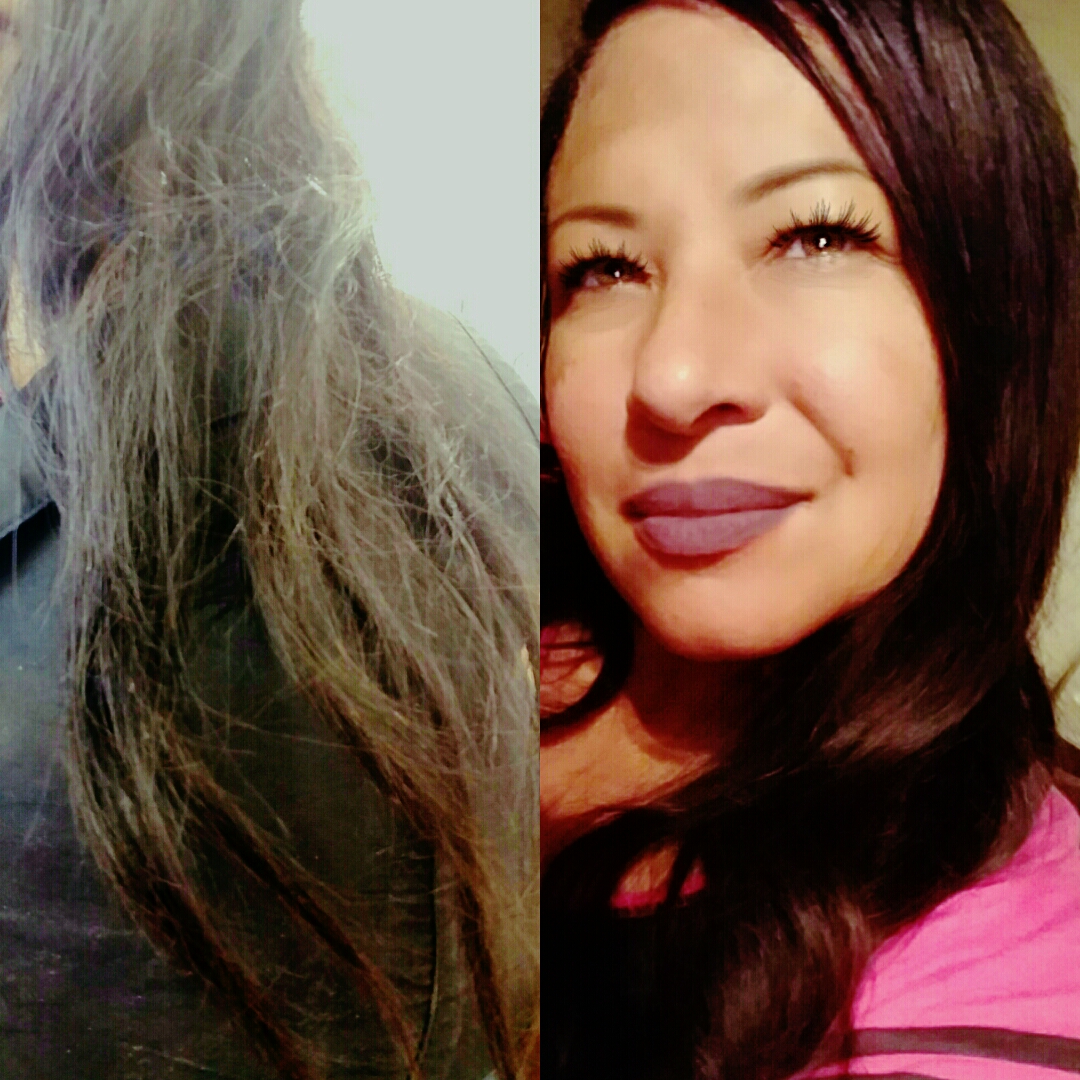 See my before and after picture. The picture on the right was taken a few minutes ago. I went from rats nest to silky in one day. Can you see the difference in the way it looks. I’m sold..I will use this SHE brand until kingdom come. Ps) Look and see if they carry it in your local mall at the (carts)..