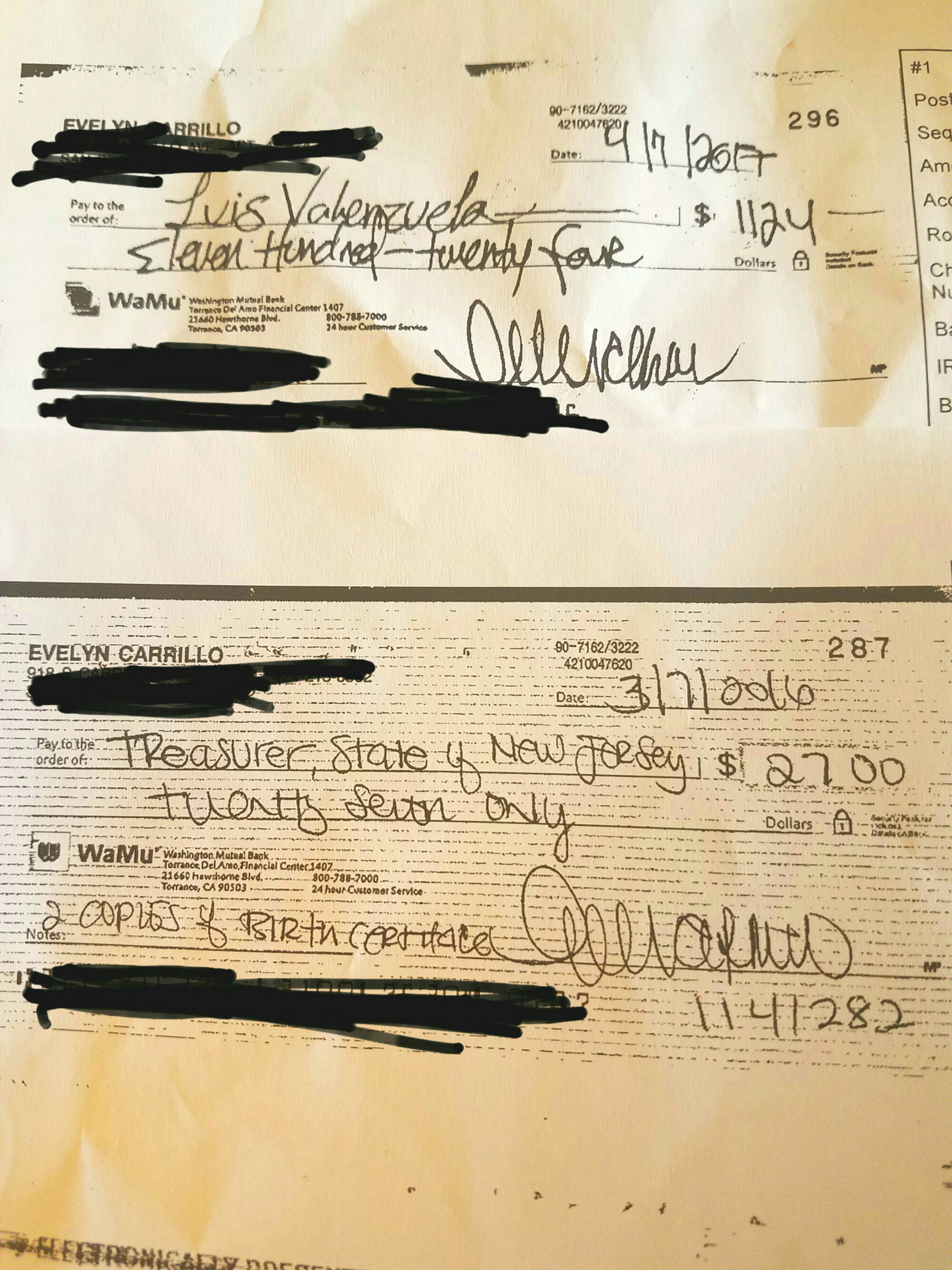 2) My last name is Carrillo you can tell in my signature at the bottom right hand of the check that the last letter I wrote is a O.