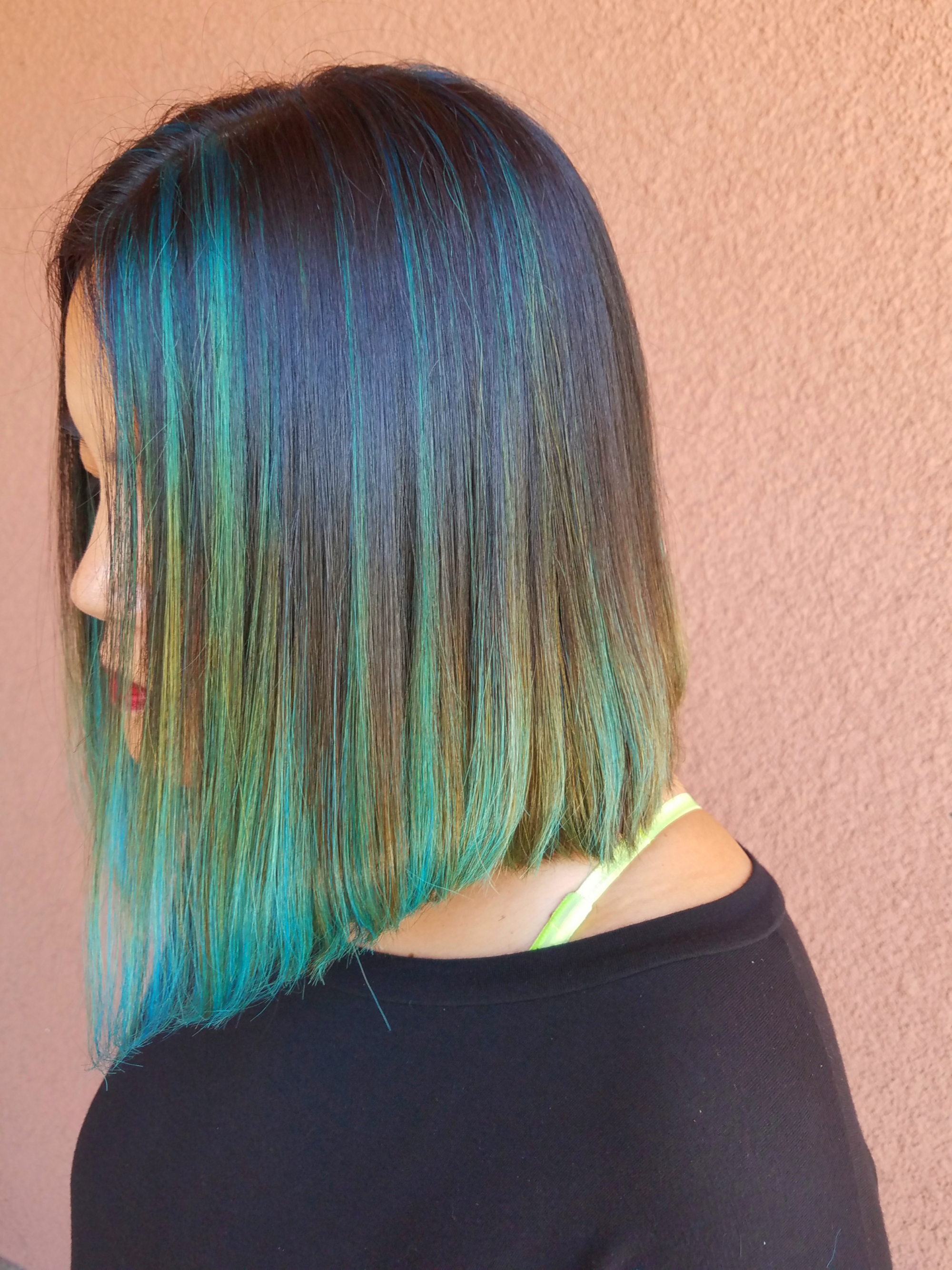Her hair looks like glow in the dark hair in this picture. I used Joico intensity colors. I mixed two colors a darker one on top and a lighter one at the bottom.
