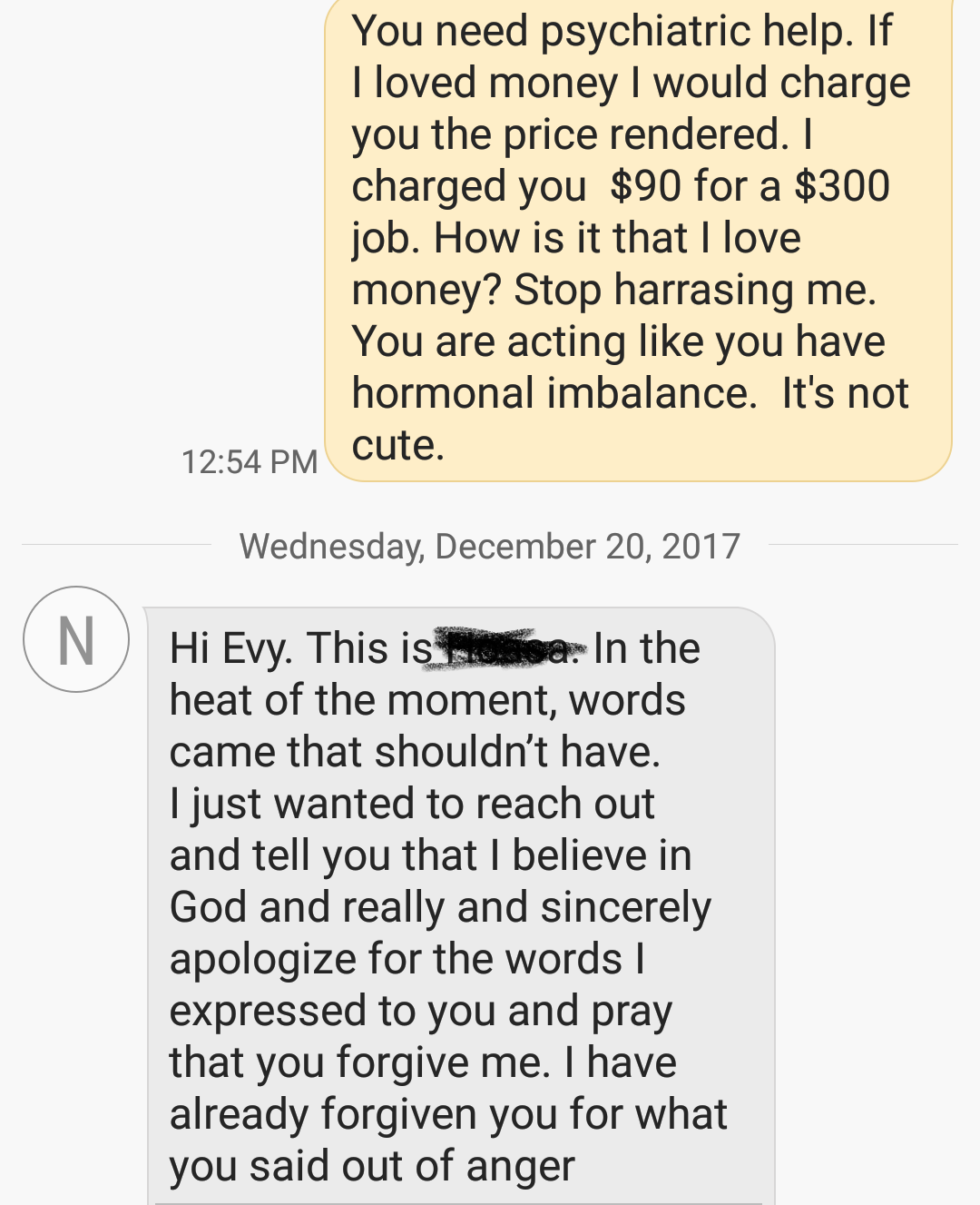 I forgive her in the other texts she called me a dirty skank…but I’m not setting myself up for more leeches.