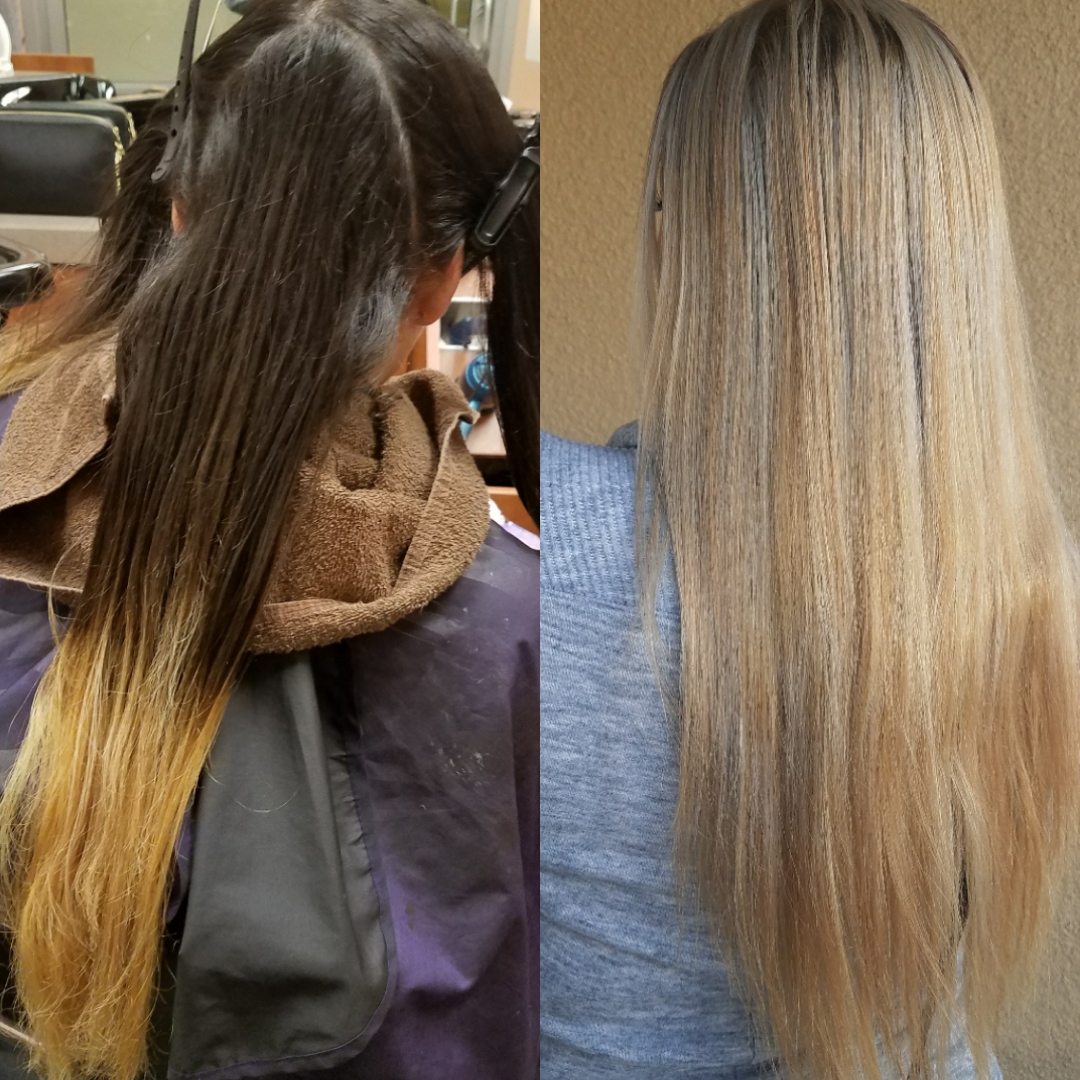 I’m so proud of this big transformation I did last week. I can’t stop looking at her hair. Bleach is scary to work with. You have to work fast and stay on top of it. Sally came back yesterday and bought all the recommended products I recommend her..It swells my heart when clients listen to me. You cannot walk around with expensive hair and use cheap products. It’s not going to work.