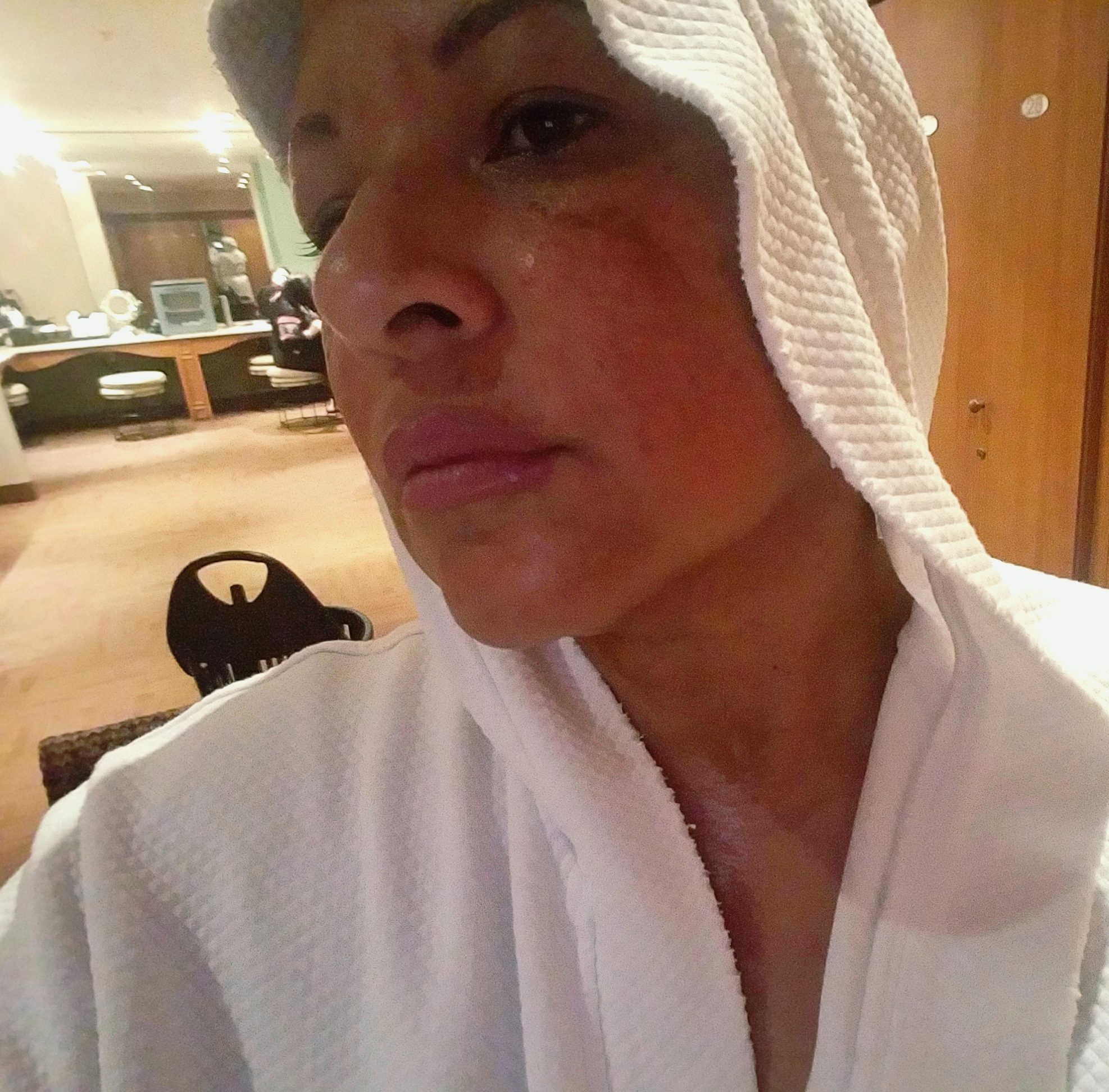 I just got a facial from my good friend Holly. We barter I do her hair and she does my facials. I haven’t had a facial since before the holidays, we were both so busy and our schedules collided. Today she gave me a interesting facial called micro current it tightness loose facial muscles. Some of you have seen my youtube videos and you can see that I have extra face😂😂😂…my face looks like it shrunk and I dont see my double chin. She says that it will last me a week!! Wow I wish I had this gadget at home…it’s cheaper than a facelift. I feel so relaxed…the closest thing for a vacation to me is my facial treatments I go in the jaccuzzi, sauna, showers and anyhing else thats hot and humid in here. ….. so relaxing🤗🤗🤗