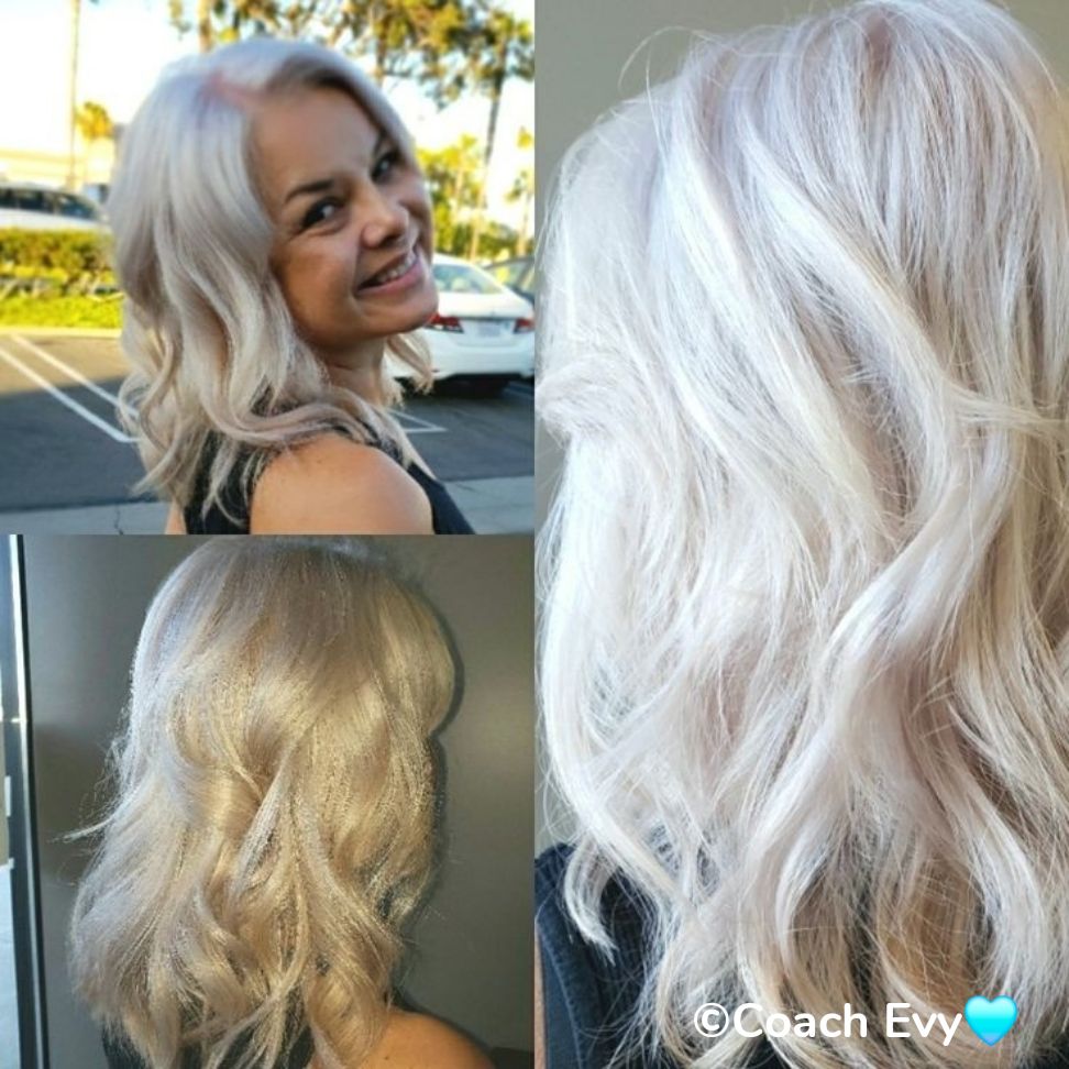 If you’re thinking about going blonde, I often recommend it, especially if you have a lot of white hairs. This way, you can extend the time between touch-ups. Platinum blonde blends well with white hair, allowing for a more natural transition as your roots grow in. Just be sure that the shade complements your skin tone for the best overall look!